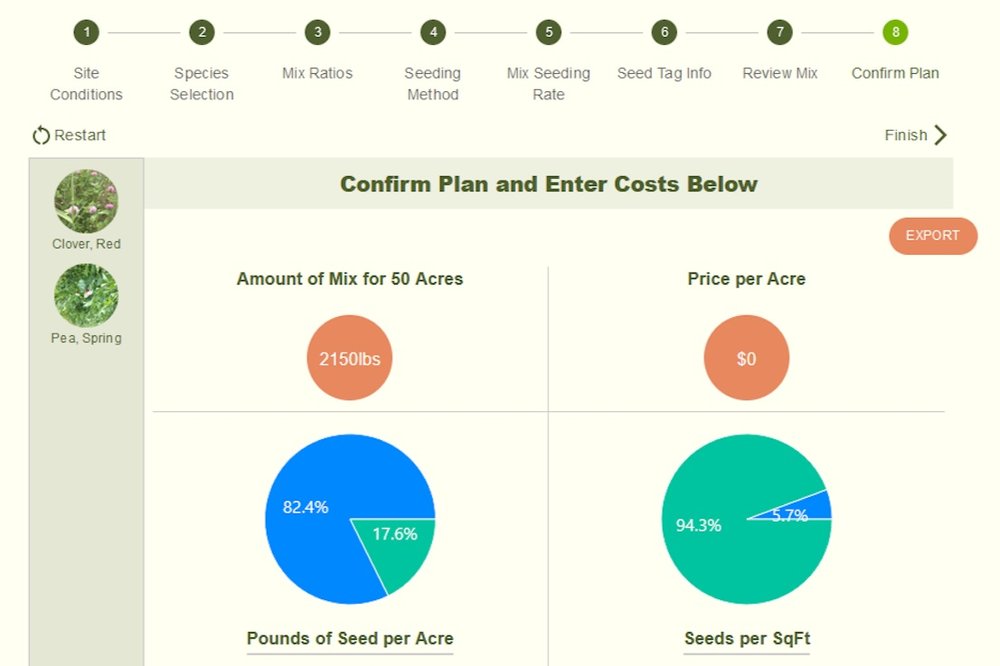 Once you’ve entered your cover crop species, planting location and date, acreage, and other factors, the Cover Crop Seeding Rate Calculator recommends rates based on averages determined by your regional Cover Crop Council.